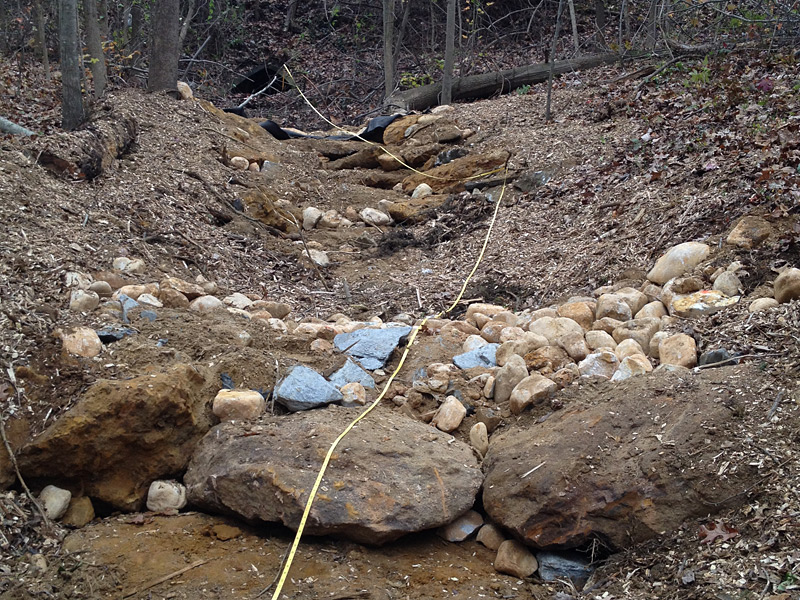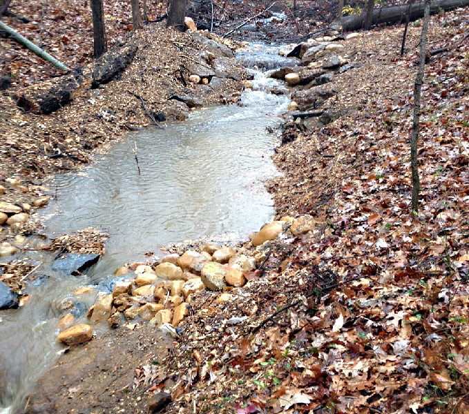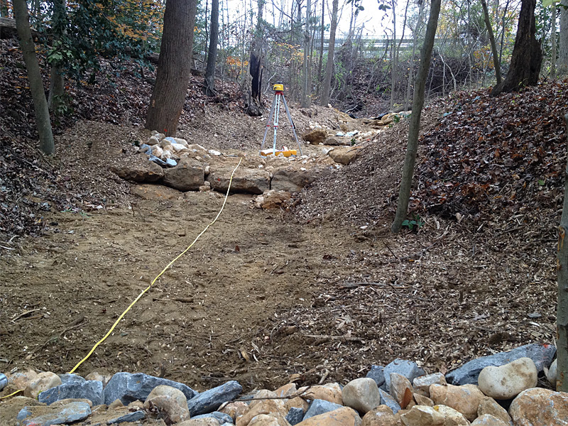 As a tributary to Broad Creek and ultimately the South River, this ephemeral channel was highly degraded due to a variety of land use changes and increased amounts of impervious surfaces. The channel exhibited a high degree of incision and showed the indices of further degradation. RRG was able to successfully design and construct a regenerative stormwater conveyance system to adequately convey storm flows while maximizing on-site storage and infiltration.